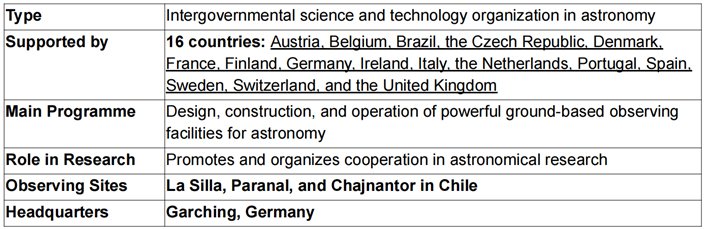 ABOUT EUROPEAN SOUTHERN OBSERVATORY (ESO)