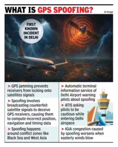 - On November 6, 2025, Delhi’s Indira Gandhi International (IGI) Airport experienced a rare and serious GPS spoofing incident — the first known case of its kind in India.