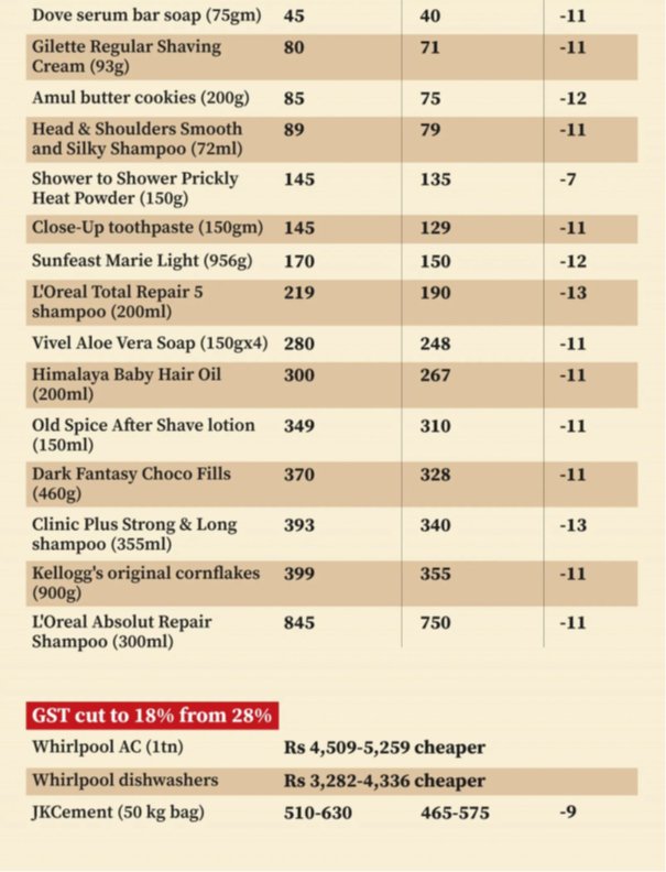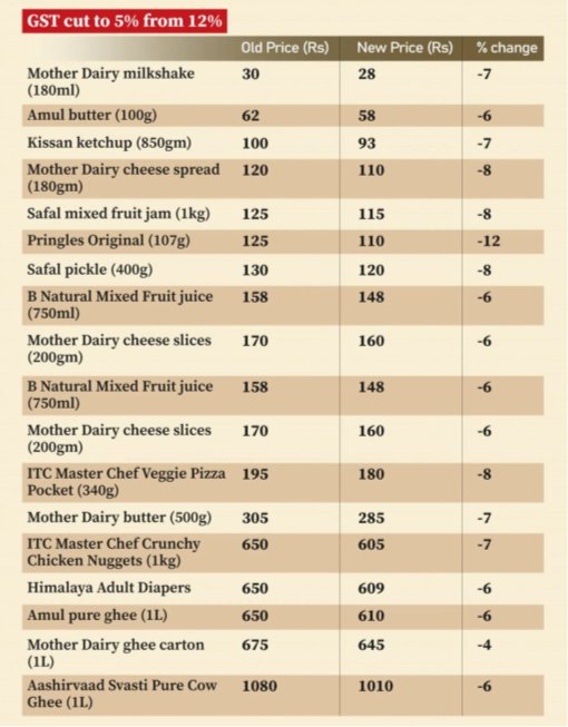 - Key consumer products now fall under lower GST slabs — aimed at boosting household budgets, reducing inflation, and stimulating demand.