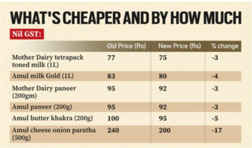 Essential food items (Paneer, Butter, Cheese, etc.) | 5%–18% | 0%–5% |