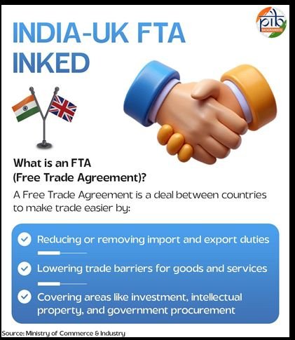 - Recently in July 2025, India and the U.K. signed a landmark Comprehensive Economic and Trade Agreement (CETA) after over 3 years of negotiations (started Jan 2022).