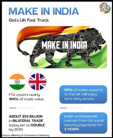 - Though the U.K. is a smaller trade partner, the agreement lays groundwork for India’s FTAs with larger economies like the EU and U.S.