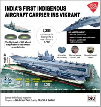 - It is India’s first indigenously designed and manufactured aircraft carrier.