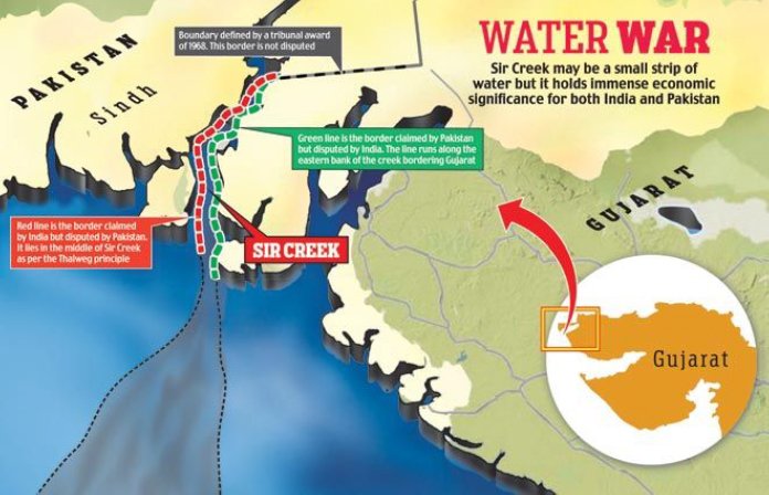 Sir Creek is a 96-kilometre-long tidal water channel located between India’s Gujarat (Rann of Kutch) and Pakistan’s Sindh province.