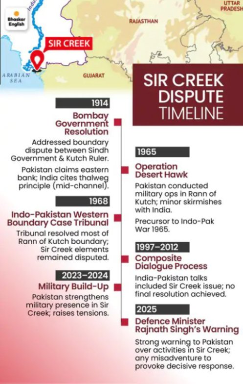 - Recently, in October 2025, the dispute resurfaced due to military build-up by Pakistan in the Sir Creek area.