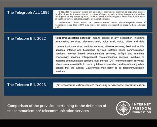 - The Indian government has proposed the Telecommunications Bill, 2023 to replace the Indian Telegraph Act, 1885, the Indian Wireless Telegraphy Act, 1933, and the Telegraph Wires (Unlawful Possession) Act, 1950.